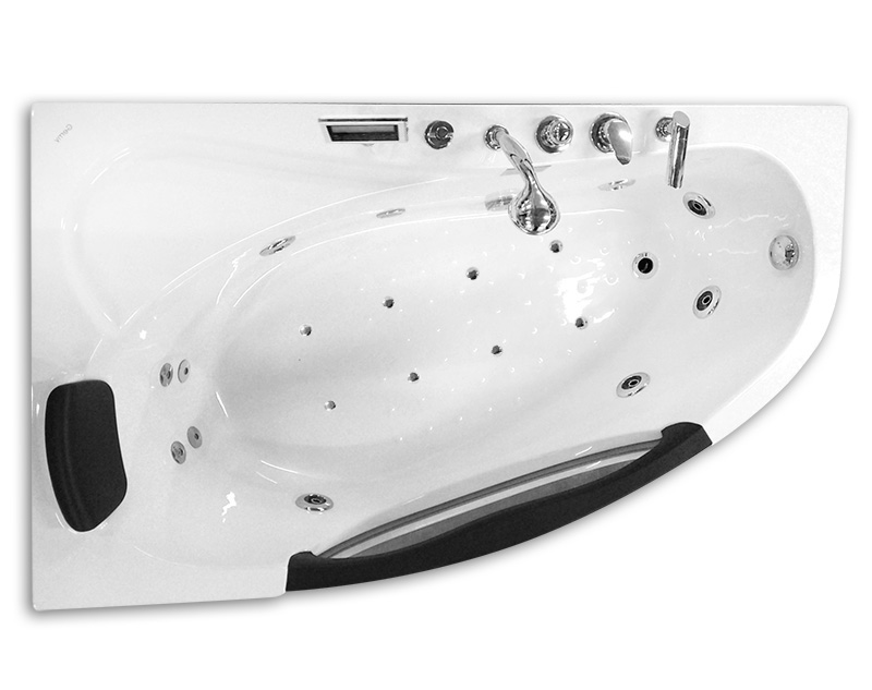 Комплектация ванны: антискользящее покрытие, аэромассаж 8 форсунок хром, гидромассаж 9 форсунок хром, защита от сухого пуска, каркас, смеситель с изливом, душевая лейка, съемная панель, массаж спины, мощность насоса, Вт 750, мультимедиа радио, Bluetooth, прием звонков, озонирование, подголовник, регулировка интенсивности массажа, слив-перелив, тип управления электронное, хромотерапия