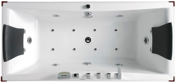 Комплектация ванны: аэромассаж 8 форсунок хром, гидромассаж 10 форсунок хром, защита от сухого пуска, смеситель с изливом, душевая лейка, съемная панель, массаж спины, мощность насоса, Вт 750, мультимедиа радио, Bluetooth, прием звонков, зонирование, подголовник, регулировка интенсивности массажа,слив-перелив, тип управления электронное, хромотерапия