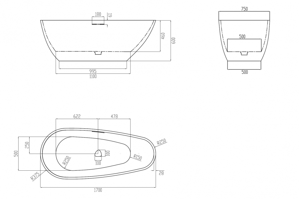 Ванна из искусственного камня Abber Dortmund 170x75 черная матовая (AM9911B)