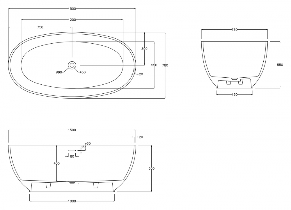 Ванна из искусственного камня Abber Stein 150x78 белая матовая (AS9641-1.5)