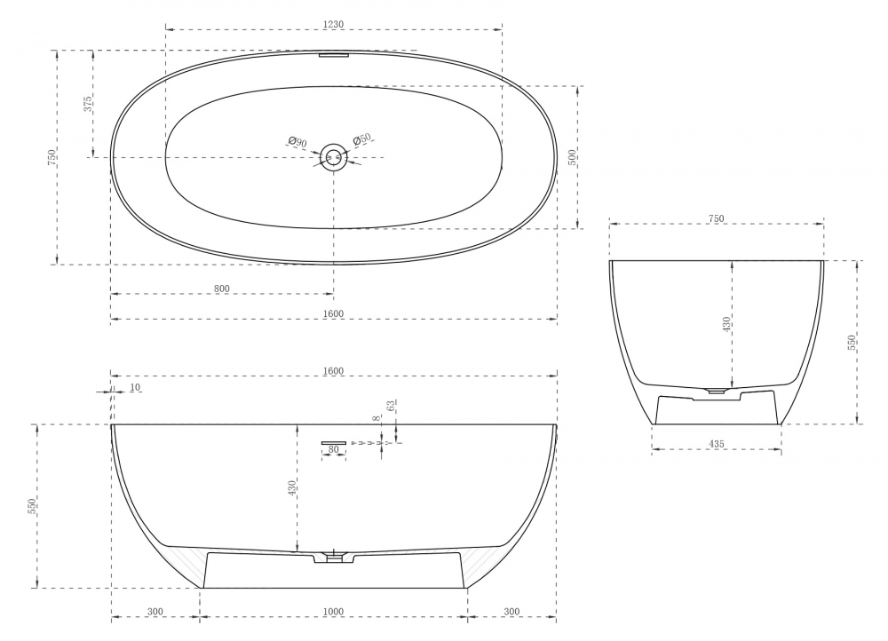 Ванна из искусственного камня Abber Stein 160x75 белая матовая (AS9624-1.6)