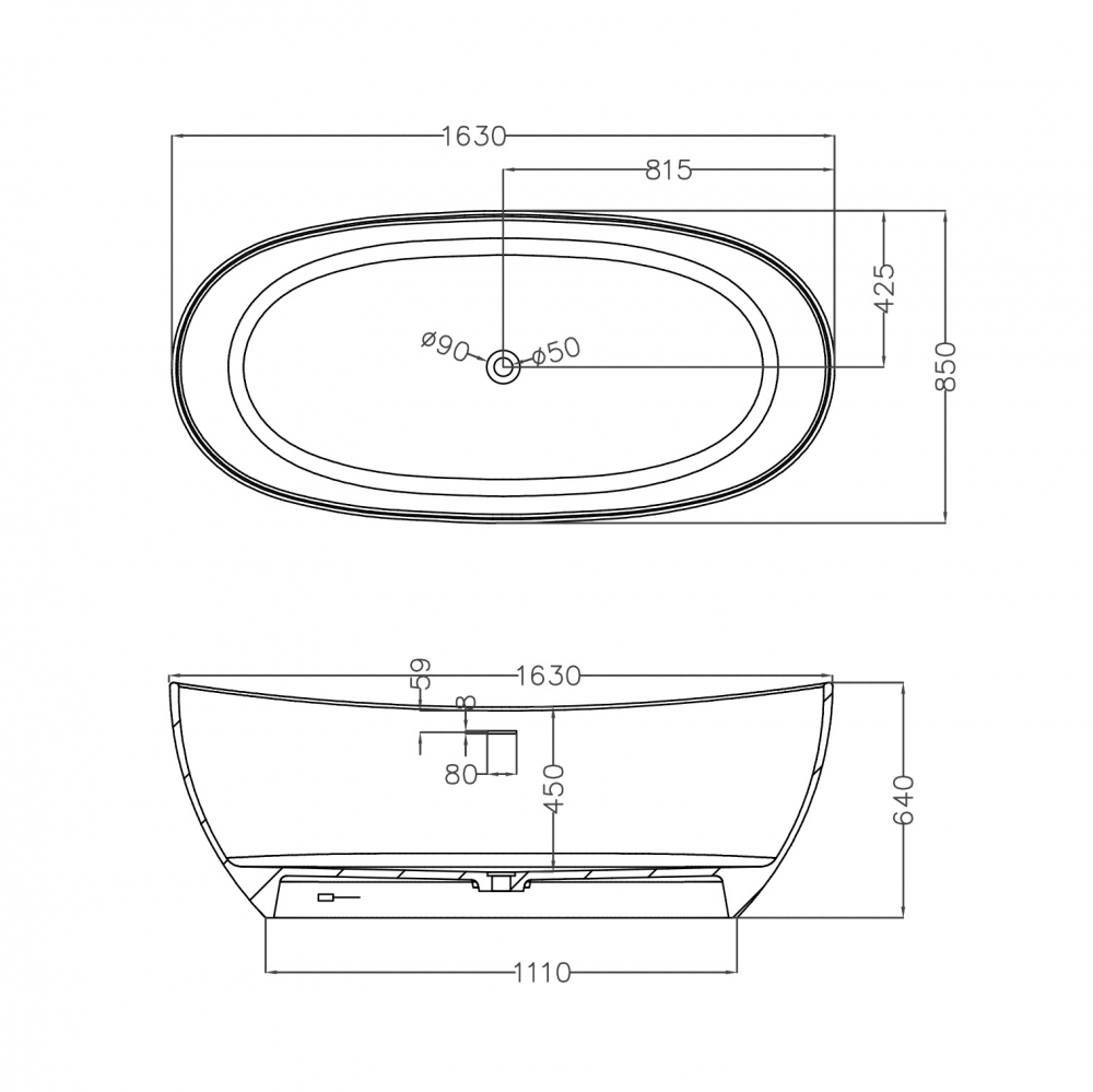 Ванна из искусственного камня Abber Stein 163x85 белая матовая (AS9615-1.6)