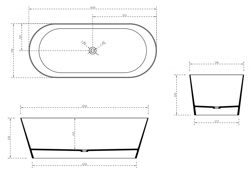 Ванна из искусственного камня Abber Stein 165x70 белая матовая (AS9622)