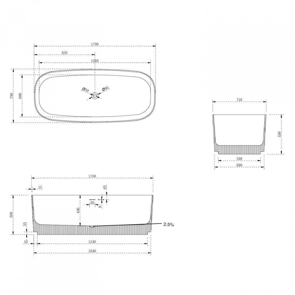 Ванна из искусственного камня Abber Stein 170x75 белая матовая (AS9601)