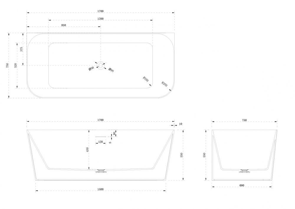 Ванна из искусственного камня Abber Stein 170x75 белая матовая (AS9617)