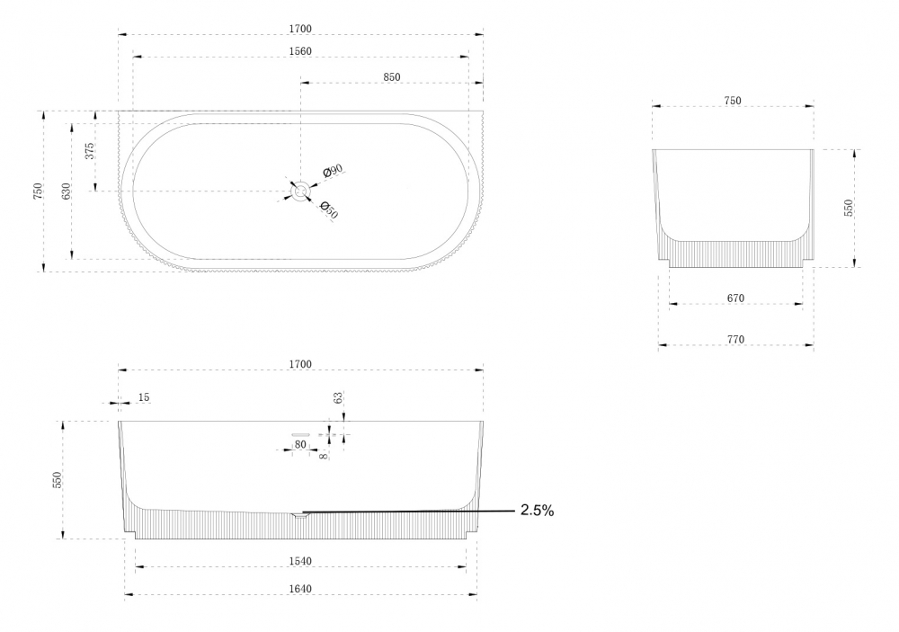 Ванна из искусственного камня Abber Stein 170x75 белая матовая (AS9630)