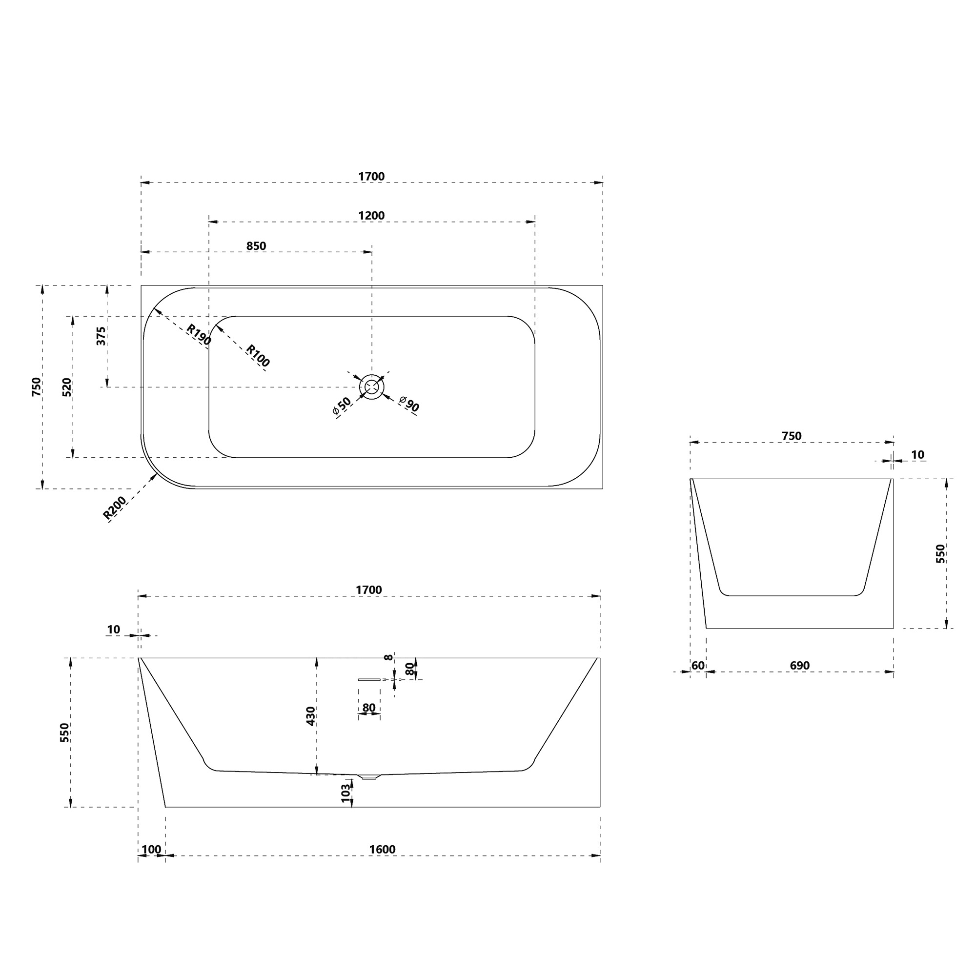 В комплекте поставки: ванна, слив-перелив