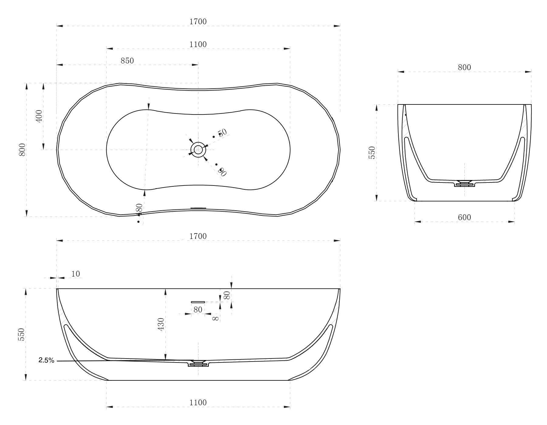 Ванна из искусственного камня Abber Stein 170x80 белая матовая (AS9604)