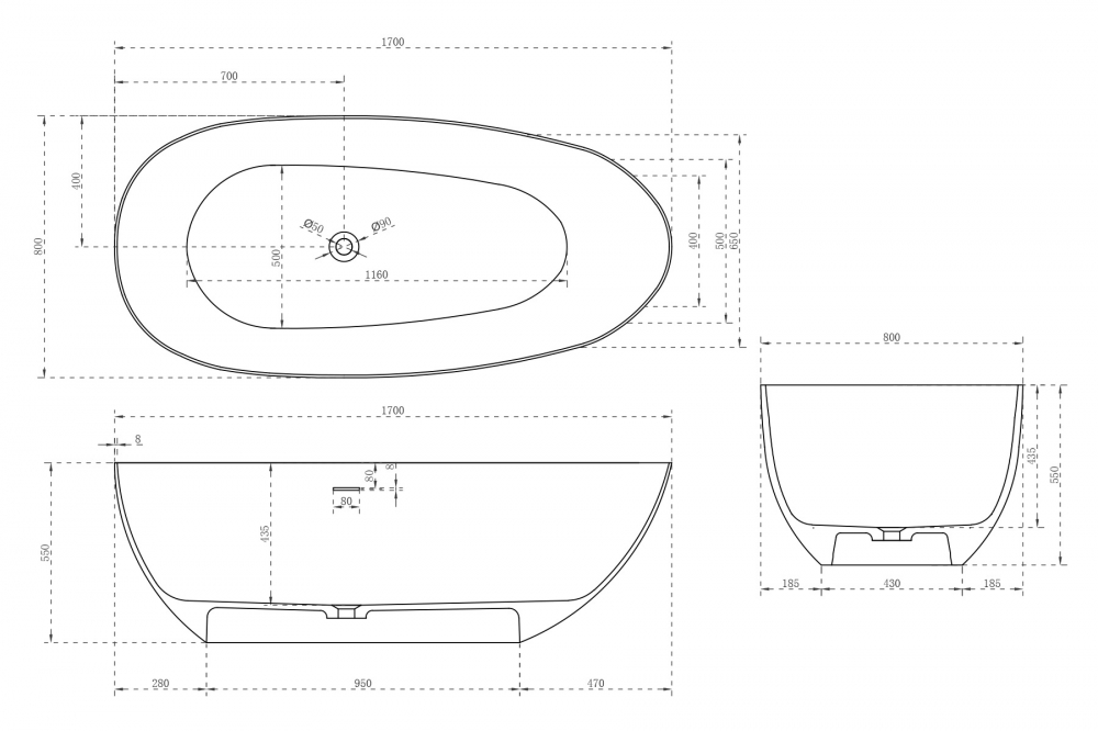 Ванна из искусственного камня Abber Stein 170x80 белая матовая (AS9611-1.7)