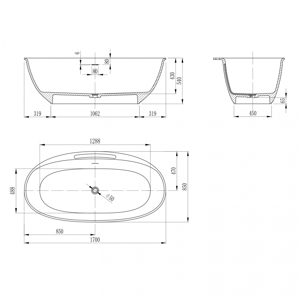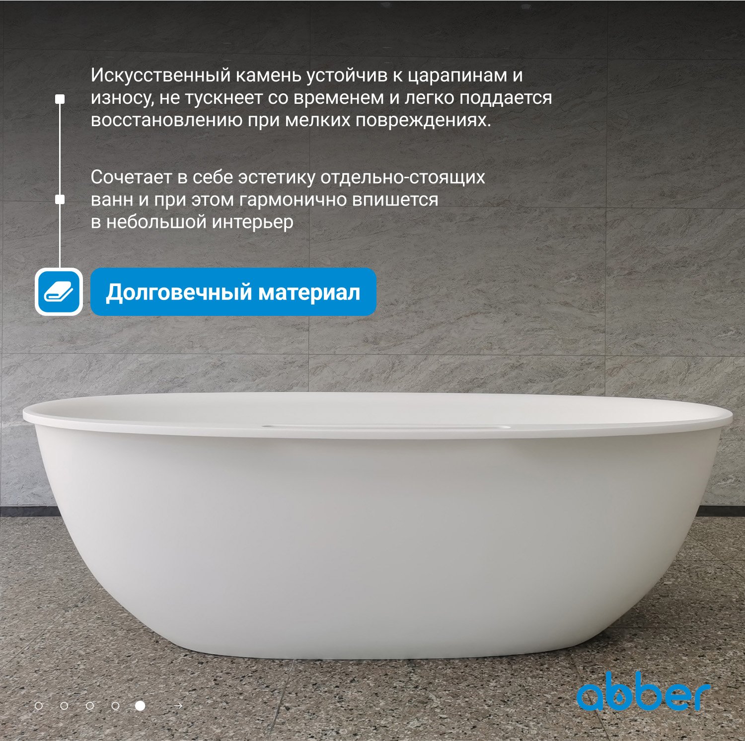 Ванна из искусственного камня Abber Stein 170x85x54 белая матовая (AS9631)