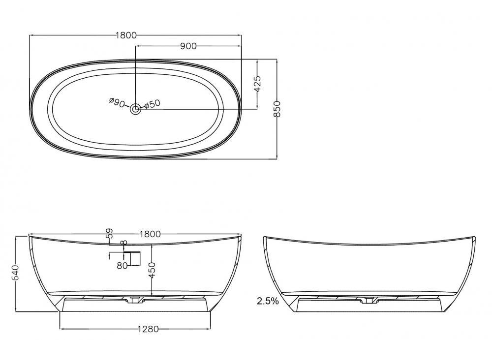 Ванна из искусственного камня Abber Stein 180x85 белая матовая (AS9615-1.8)
