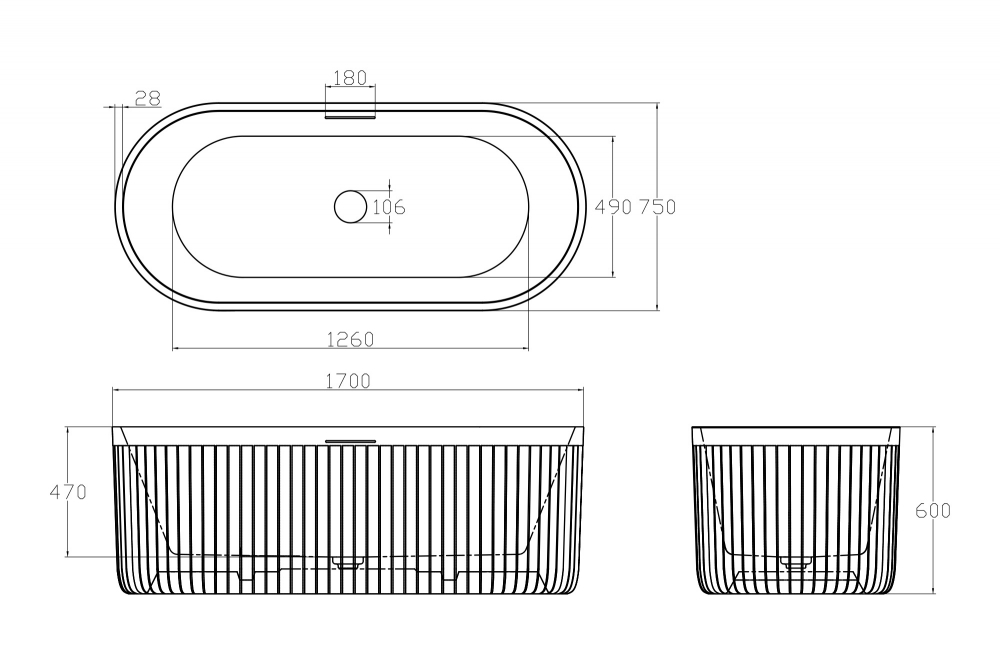 Ванна из искусственного камня Abber Stuttgart 170x75 белая матовая (AM9925)