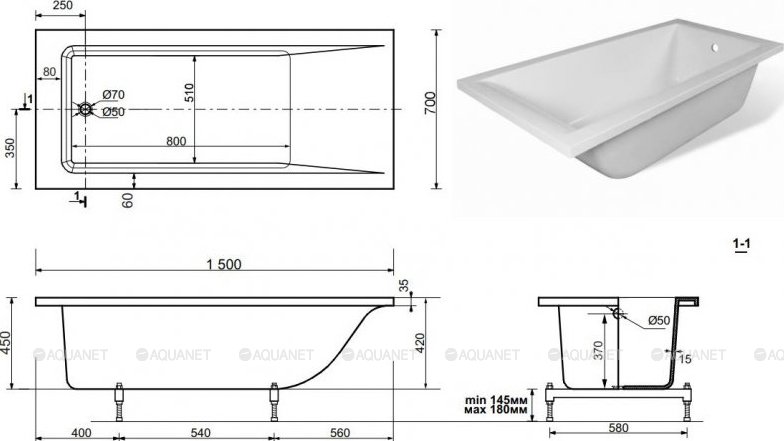 Состав поставки: ванна. Каркас/ножки/экран - приобретаются отдельно.