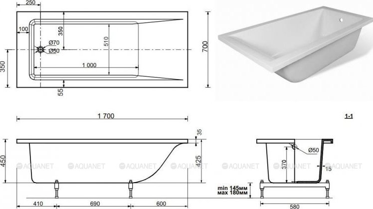 Состав поставки: ванна. Каркас/ножки/экран - приобретаются отдельно.