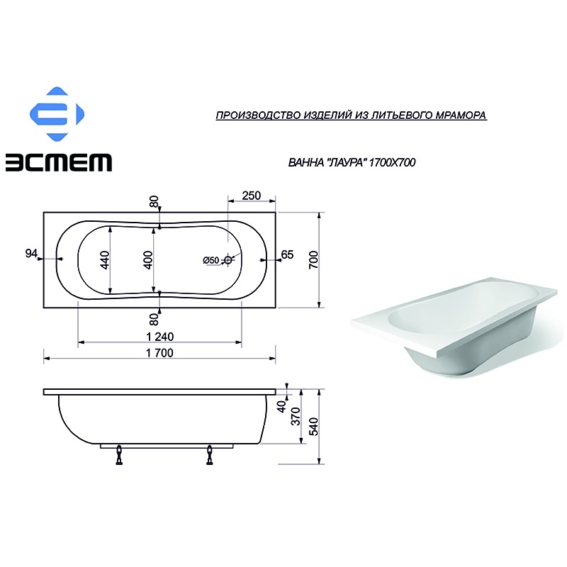 Ванна из литьевого мрамора Эстет Лаура 170х70