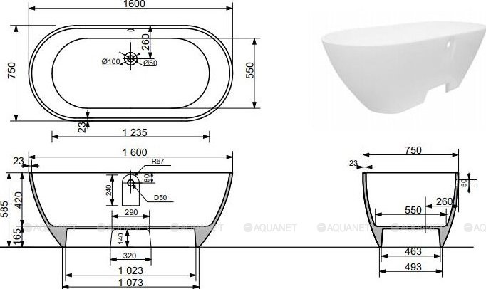 Ванна отдельностоящая Family Stone 160х75 белый (332889)