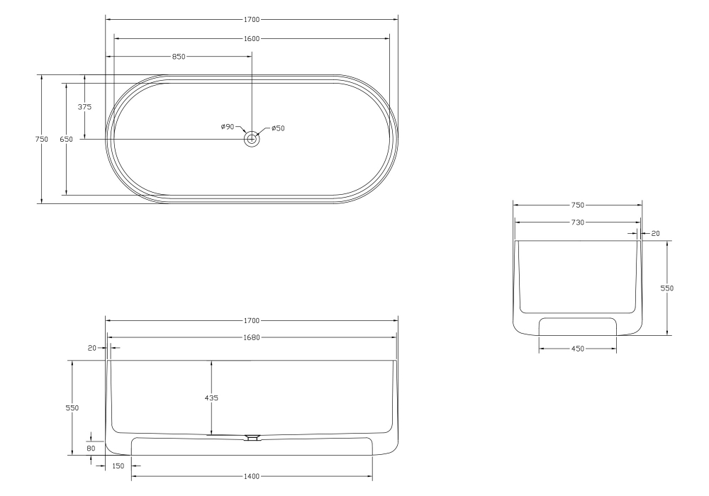 Ванна прозрачная Abber Kristall 170x75 бирюзовая (AT9708Aquamarin)