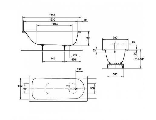 Ванна стальная Kaldewei Eurowa 312-1 170x70 (119812030001)