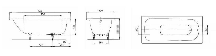 Ванна стальная Kaldewei Saniform Plus 361-1 150x70 с антигрязевым покрытием easy-clean (111600013001)
