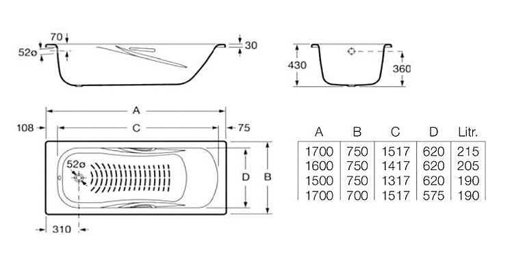 Серия Princess покрыта трехслойной белой эмалью, сохраняющей свой цвет и гладкость на протяжении многих лет. Дно ванн имеет противоскользящие засечки.