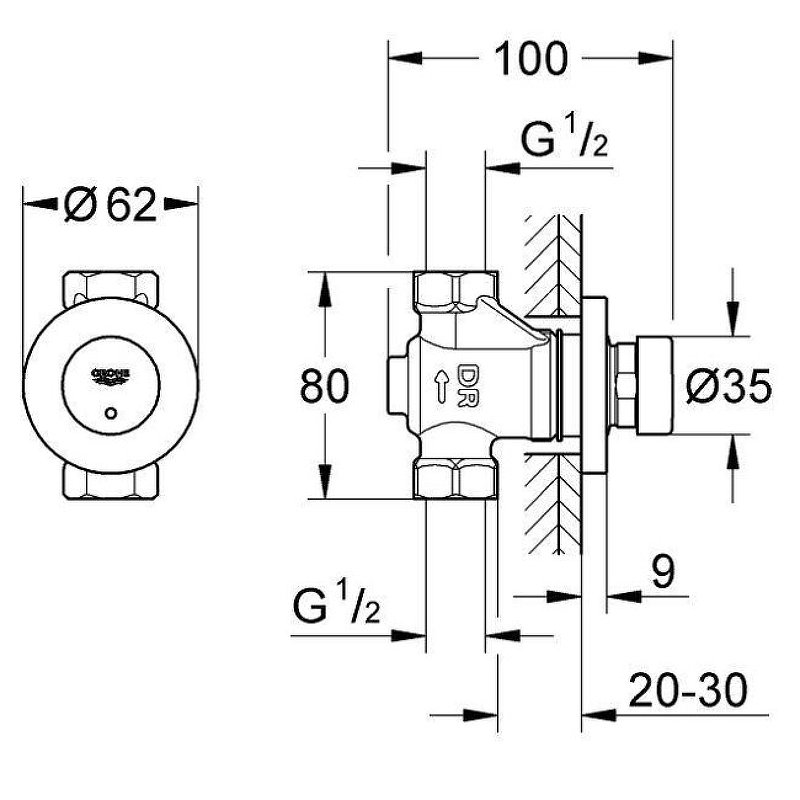 Вентиль Grohe Euroeco Cosmopolitan внешняя часть хром (36268000)