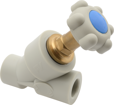 Вентиль косой с обратным клапаном PP-R 20 мм. FV-Plast (серый) (307020) / FV PPR Вентиль косой с обратным клапаном