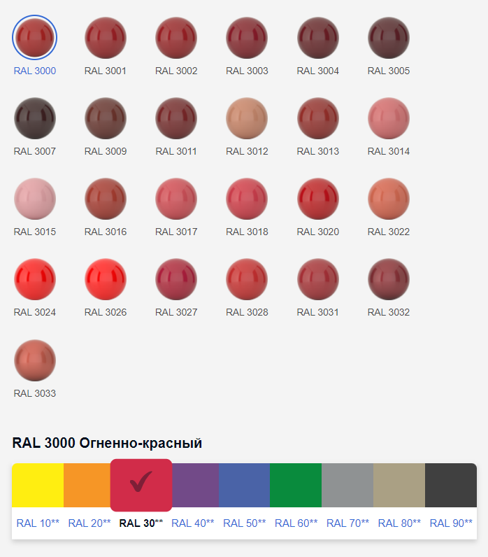 Палитра RAL Classic - порошковый метод окраски изделий в любой цвет из коллекции RAL Classic, насчитывающей 213 оттенков, в том числе 2 металлика, 15 перламутровых и 6 флуоресцентных.