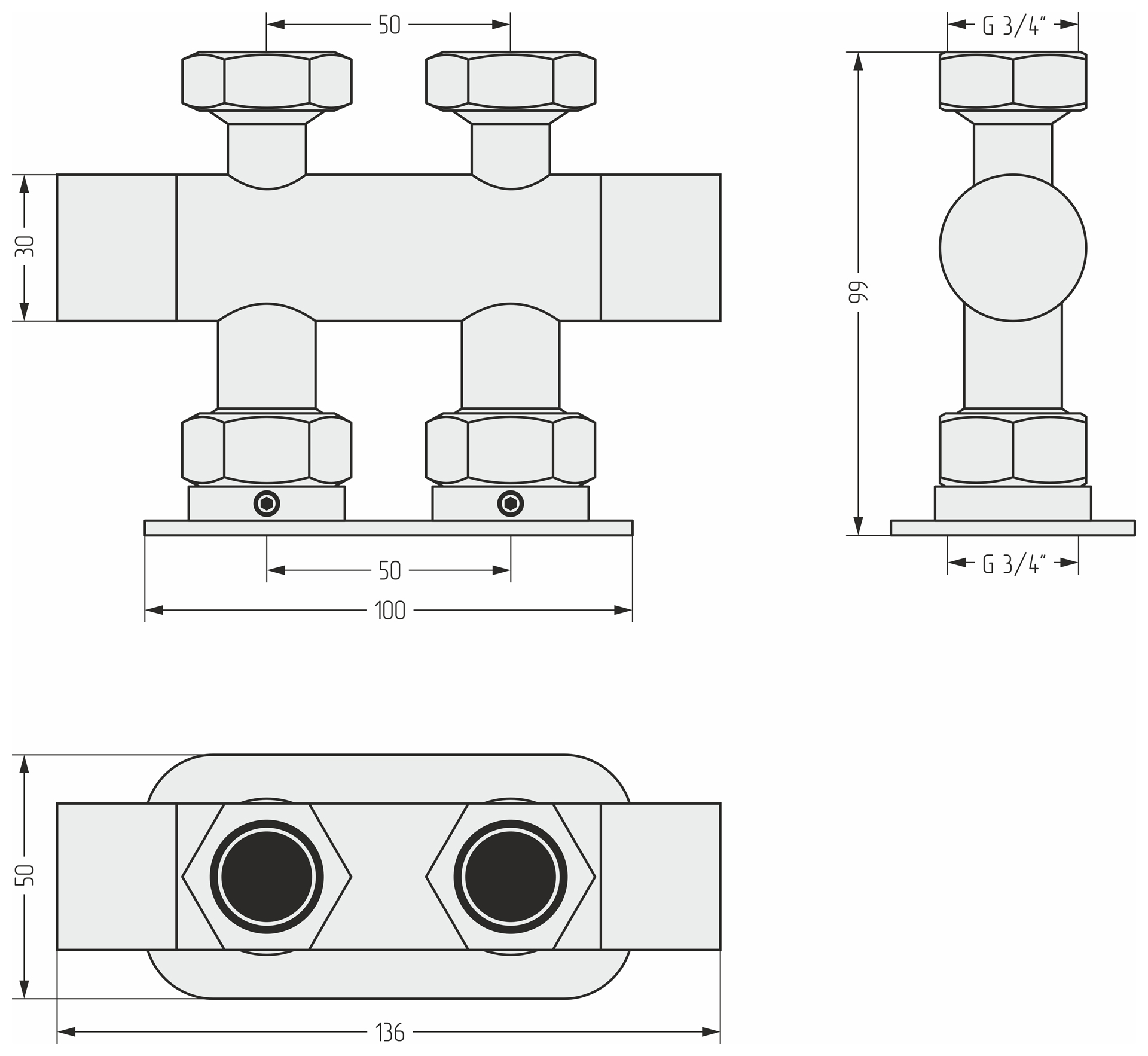 Вентиль Сунержа 2х3/4" прямой скрытый-скрытый EU50 матовый черный (31-1419-3434)
