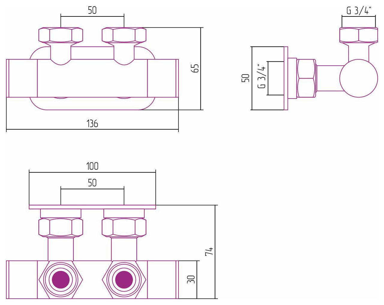 2х3/4"х2х3/4"