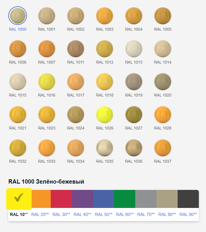 Палитра RAL Classic - порошковый метод окраски изделий в любой цвет из коллекции RAL Classic, насчитывающей 213 оттенков, в том числе 2 металлика, 15 перламутровых и 6 флуоресцентных.