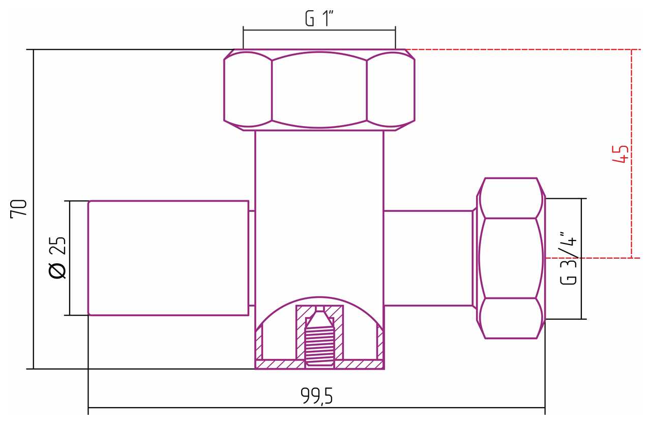Вентиль Сунержа запорный стилье, круглый с клапаном 1"x3/4" с накидной гайкой (01100-1034)