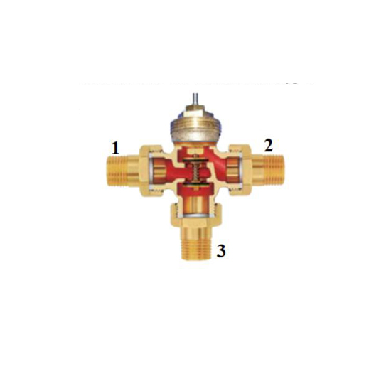 Регулировка такого клапана происходит за счет установки термостатической головки с контактным или погружным датчиком на встроенный клапан что позволяет обеспечить нужный температурный режим подаваемого теплоносителя в тот или иной контур за счет уменьшения одного потока теплоносителя и увеличения второго.