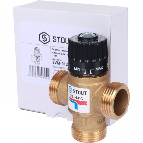 Вентиль термостатический смесительный Stout 1" НР 20-43°C, KVs 2,5 SVM-0120-254325