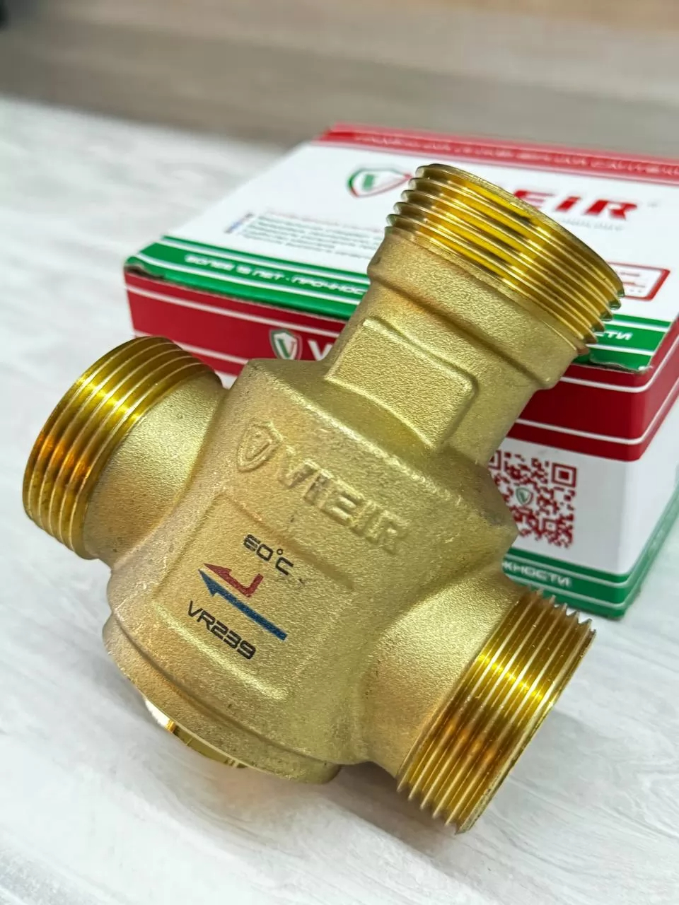 Трехходовой термостатический анти конденсационный клапан 1*1/4 Vieir VR239 для напольных котлов применяется в системах отопления для поддержания высокой температуры теплоносителя, поступающего из обратной линии в котел для защиты твердотопливного котла от образования конденсата на стенках котла и дымохода. Применение анти конденсационного клапана увеличивает эффективность и срок службы системы.