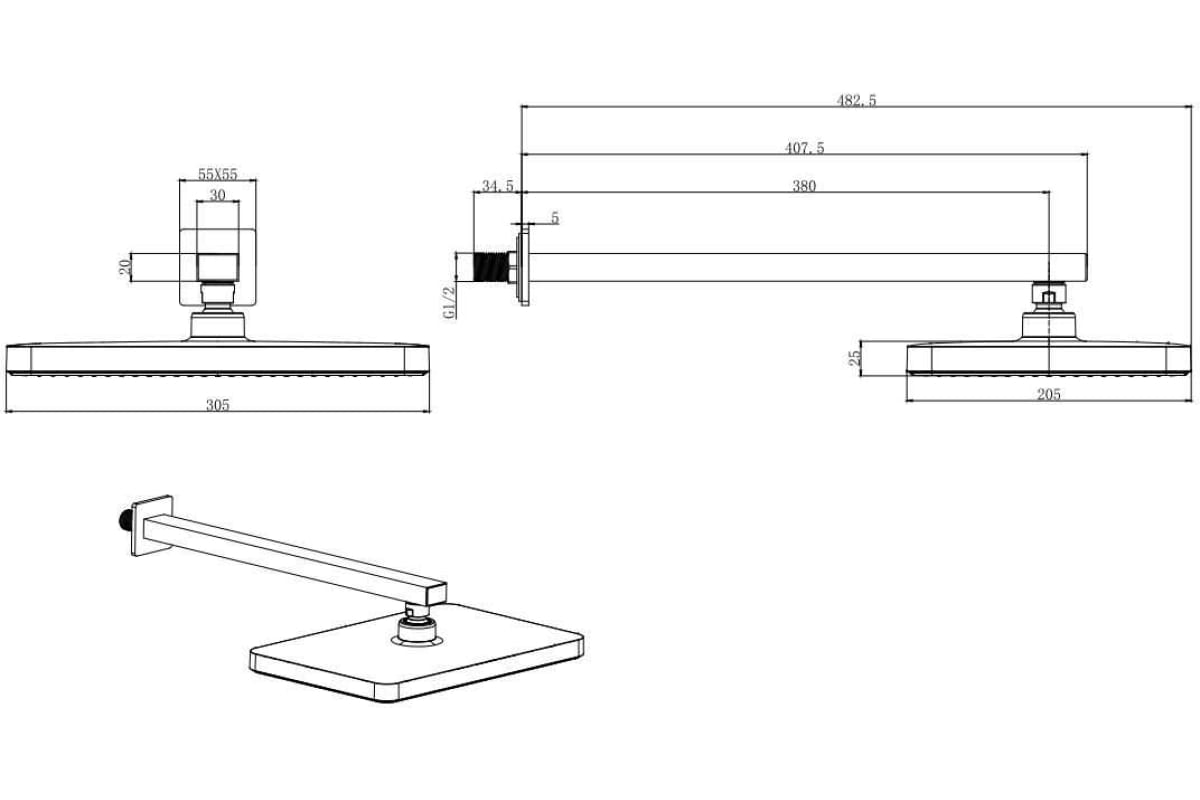Верхний душ Aquatek 305х205 мм черный матовый (AQ2081MB)