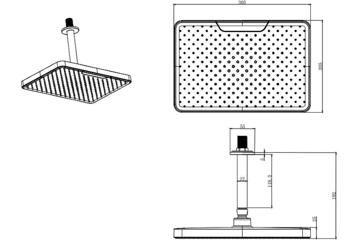 Верхний душ Aquatek 305х205 мм хром (AQ2071CR)
