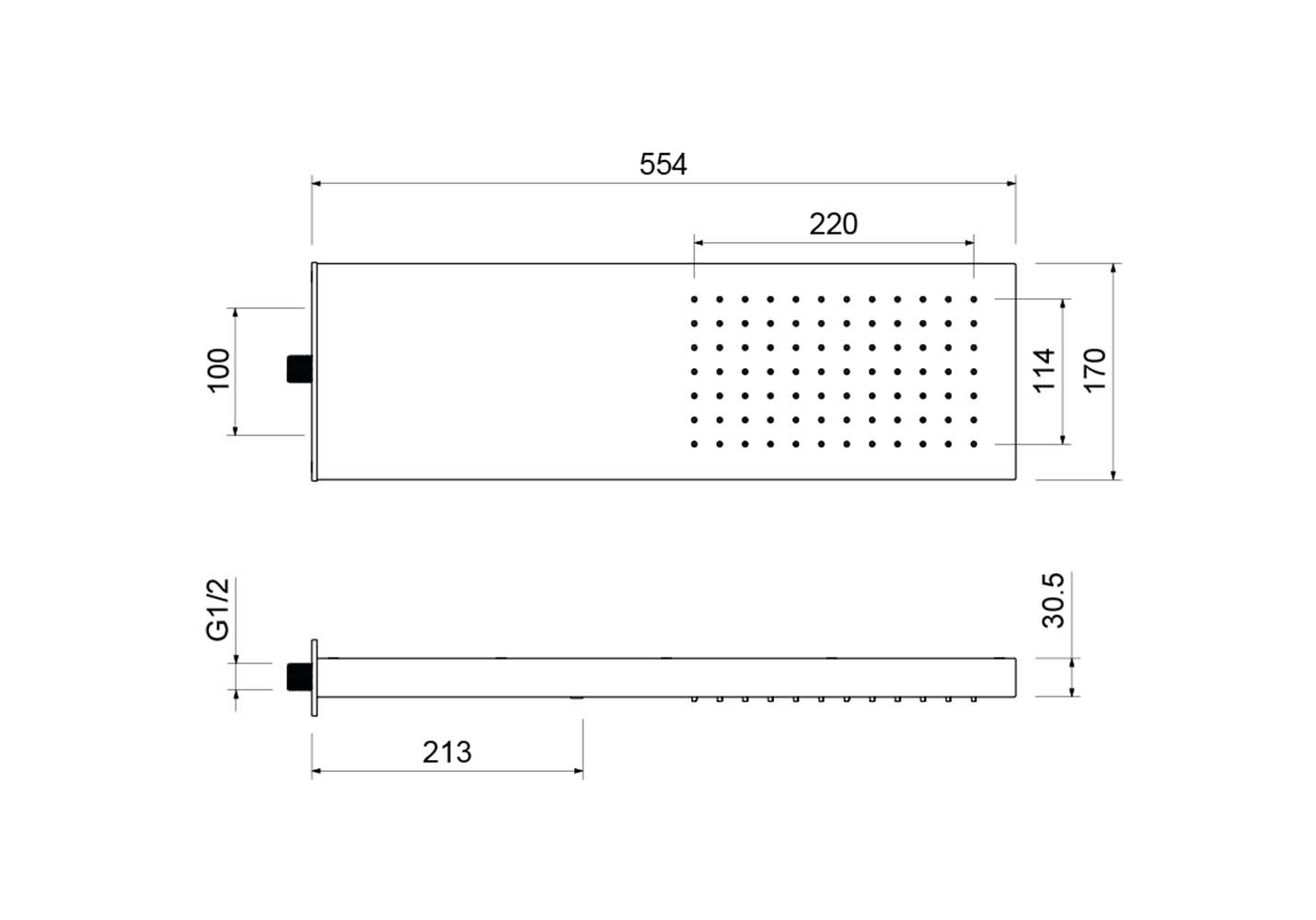 долговечная конструкция из нерж., конструкция для монтажа на стену, соединение - наружн. резьба 1/2", монтируется без кроншейна, легкая установка на стену, размер: 550x170х30 мм