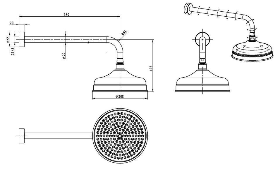 Состав поставки: верхний душ, кронштейн