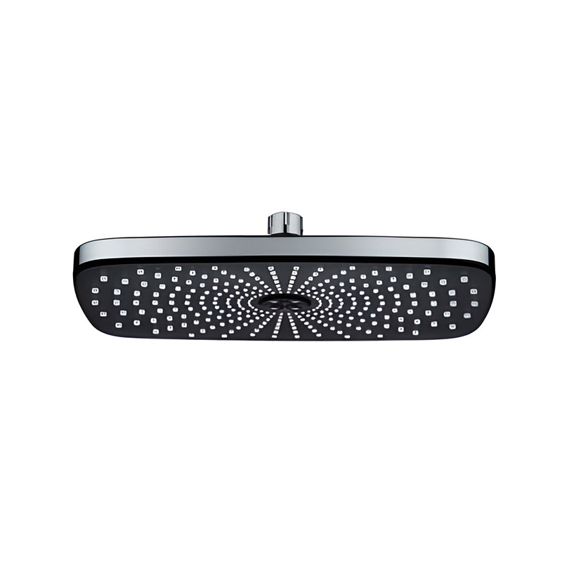 Лейка верхнего душа сделана из легкого и прочного ABS пластика хромированная с черной вставкой 295х190мм