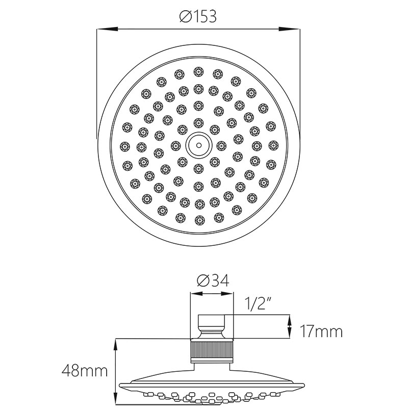 Лейка изготовлена из ABS-пластика и применяется в смесителях со стационарной штангой для тропического душа или в смесителях скрытой установки с верхним душем. Присоединительный размер 1/2".