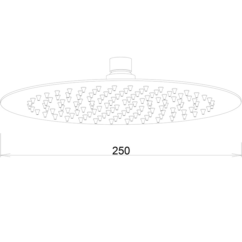 Лейка верхнего душа круглая сделана из нержавеющей стали, имеет зеркальное хромированное покрытие, диаметр 250мм