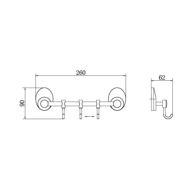 вешалка из 3 подвижных крючков на горизонтальной планке настенного монтажа, L=260 мм