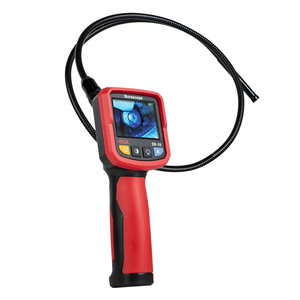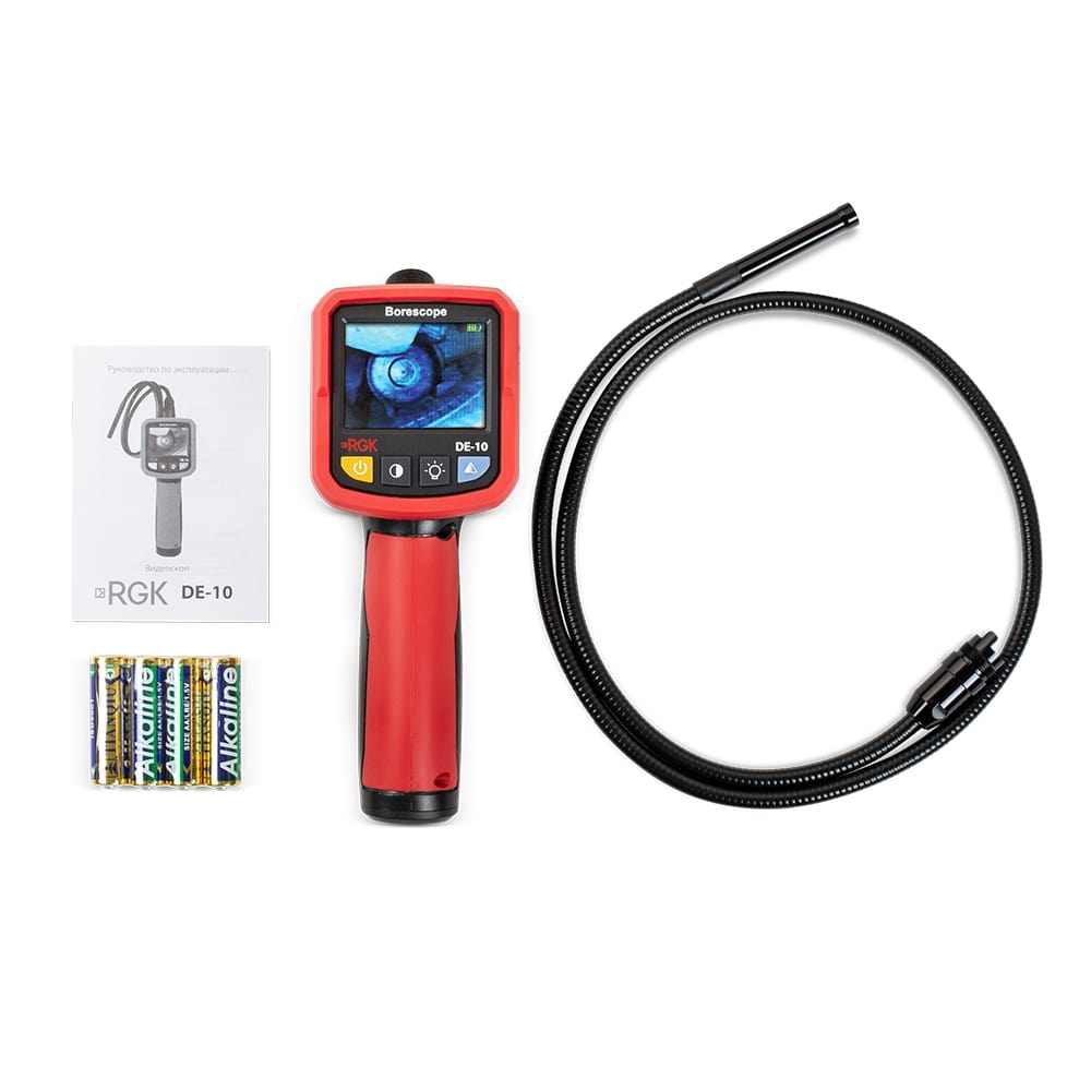 Видеоэндоскоп RGK DE-10 с гибким водонепроницаемым зондом длиной 1 метр служит для проведения визуального контроля и диагностики систем вентиляции, трубопроводов, автомобилей, различного электрооборудования. Диаметр камеры составляет всего 10 мм, что позволяет проводить инспекции в таких труднодоступных местах, свечные колодцы, технические отверстия и т.п.