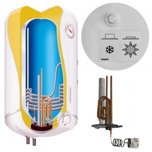 Бойлеры обеспечивают нагрев воды от централизованных и автономных систем отопления через теплообменник в осенне-зимний период, а также от медного нагревательного элемента мощностью 1500 Вт в весенне-летний период.