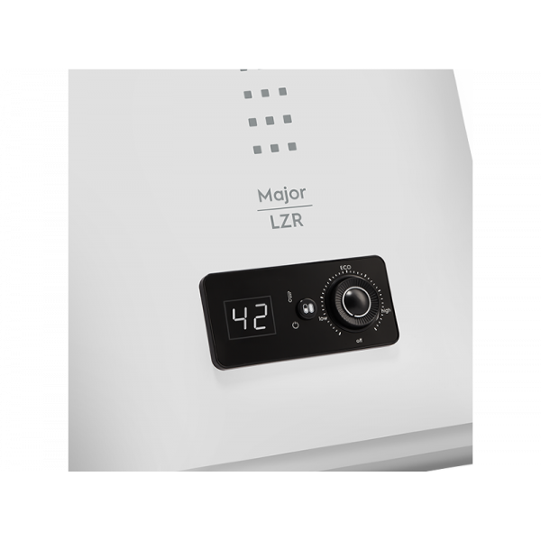 В модели EWH 30 Major LZR 3 предусмотрен LED-дисплей, на котором отображается температура воды в баке. С помощью ручки управления можно настроить необходимый уровень нагрева воды, используя диапазон, указанный на шкале. Во время нагрева специальный индикатор на панели управления будет светиться, указывая на то, что вода еще не достигла заданной температуры. После достижения заданной температуры и отключения нагрева, индикатор погаснет или поменяет цвет.