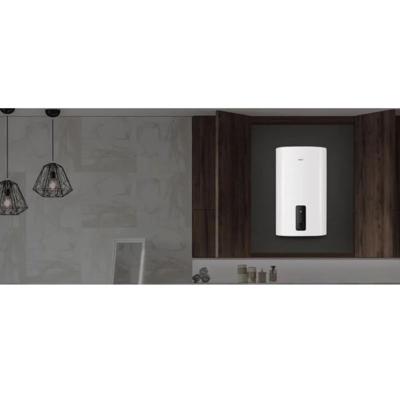 Электрический накопительный водонагреватель в плоском корпусе с двойным баком толщиной всего 29 см. В комплекте поставки с водонагревателем также идут крепежные материалы и предохранительный клапан.