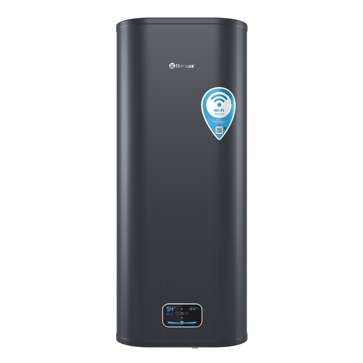 Водонагреватель Thermex - вертикальный водонагреватель с плоским корпусом с двумя внутренними баками, сенсорной панелью контроля и многофункциональным цветным дисплеем. Водонагреватель может работать в экономичном режиме или режиме полной мощности, может включаться по таймеру и имеет функцию самодиагностики с автоматическим отключением.