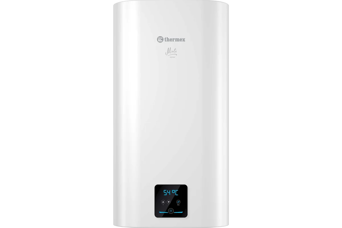 Водонагреватели THERMEX серии MINTA предлагаются с вместимостью 30, 50, 80 и 100 литров. Ассортимент линейки включает в себя электрические накопительные модели вертикального размещения, с функцией автоматической диагностики и защитой от замерзания. На съемном фланце установлен сухой нагревательный элемент InoxDryHeat, а также датчики термостата и термовыключателя.