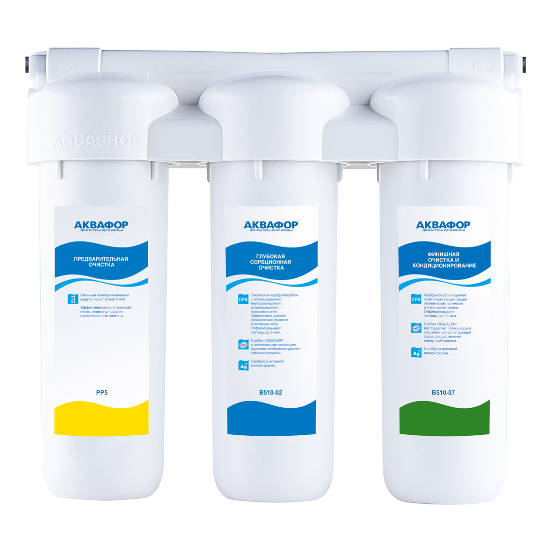 - Благодаря особенностям структуры модулей фильтр удаляет ржавчину, примеси и активно борется с мутностью. Уникальный сорбент Аквален надежно устраняет активный хлор, тяжелые металлы и другие опасные вещества размером до 0,8 микрон.