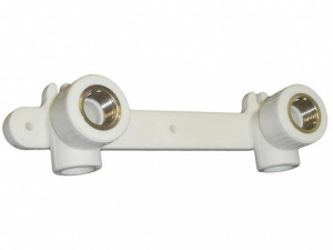 Водорозетка двойная на планке PP-R 20*1/2 ВР Pilsa белая (84030) / Планка под смеситель полипропиленовая (водорозетка) PPR 20х1/2" BP